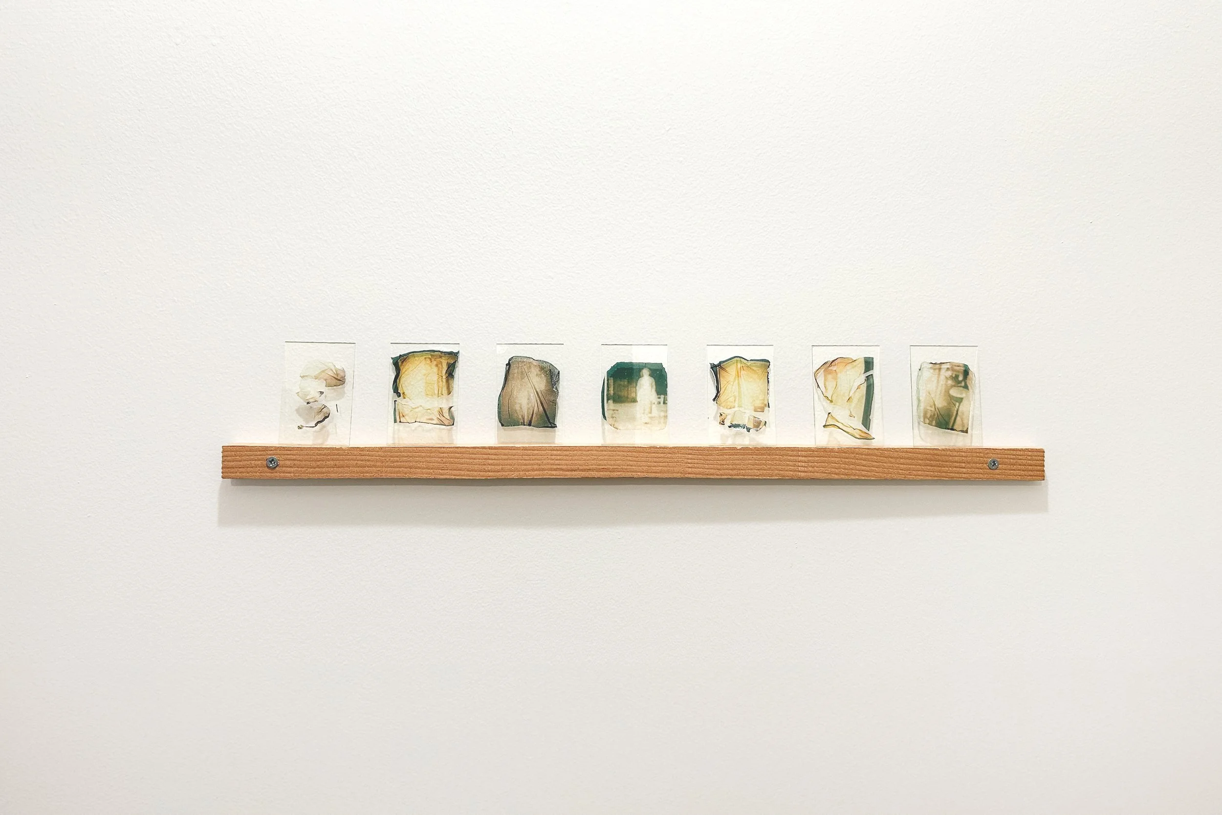 For this project, I created emulsion lifts on 2x3-inch glass slides with reproduced photographs sourced from 1940s and 1950s negatives — all of which are part of my family archive.